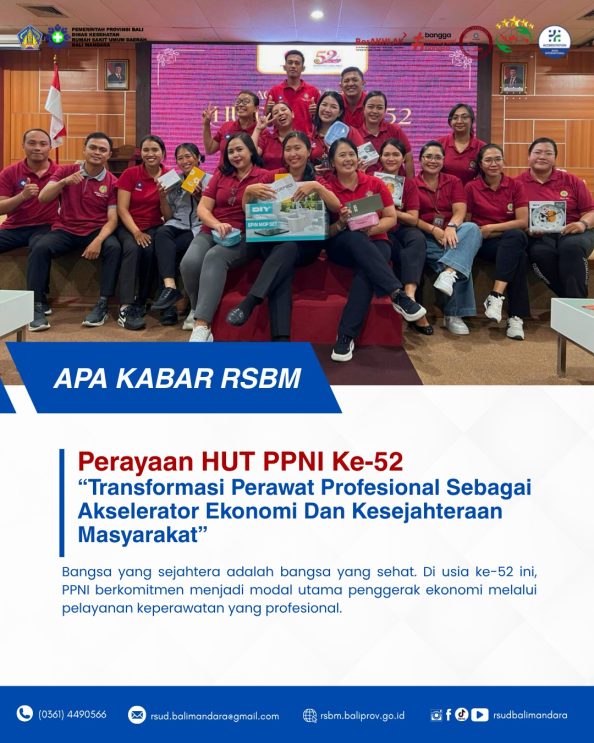 Tahun ini, kita merefleksikan tema “Perawat Profesional sebagai Modal Ekonomi Bangsa untuk Kesejahteraan Masyarakat. Kehadiran perawat bukan hanya soal tindakan medis, tapi tentang harapan dan kesejahteraan. Sebagai modal ekonomi bangsa, peran perawat sangat vital dalam menciptakan tatanan masyarakat yang sehat dan produktif. RSUD Bali Mandara mengajak seluruh keluarga besar dan pengunjung untuk ikut memeriahkan dalam […]