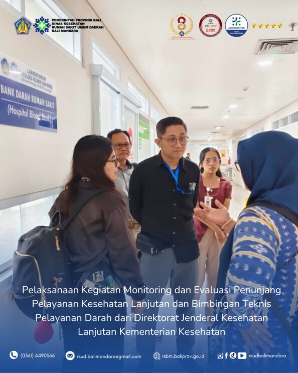 Rumah Sakit Umum Daerah (RSUD) Bali Mandara menerima kunjungan Kegiatan Monitoring dan Evaluasi Penunjang Pelayanan Kesehatan Lanjutan yang digelar pada tanggal 07 November 2025. Kegiatan ini dihadiri dari oleh tim Direktorat Jenderal Kesehatan Lanjutan Kementerian Kesehatan dalam rangka untuk memastikan penyelenggaraan kesehatan berjalan sesuai dengan standar dan prosedur khususnya pada pelayanan darah. Kegiatan Monev ini […]