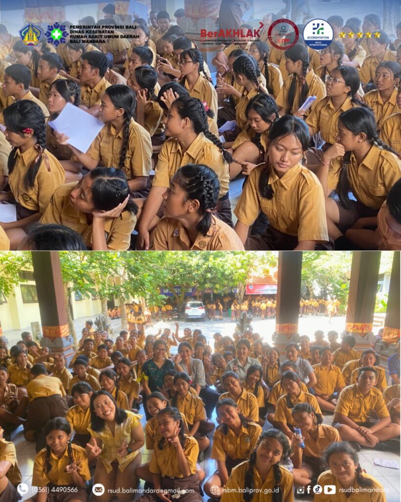 Sesi dilanjutkan dengan Penyuluhan Kesehatan Mental, topik yang semakin krusial bagi remaja. Psikolog dan tenaga kesehatan mental dari RSUD Bali Mandara berbagi wawasan mengenai pentingnya mengenali dan mengelola emosi, menghadapi tekanan akademik, serta cara membangun relasi yang sehat. Mereka juga menekankan bahwa mencari bantuan profesional untuk masalah mental adalah tindakan yang wajar dan berani, bukan kelemahan. Sesi ini disambut baik oleh para siswa yang aktif bertanya dan berbagi pengalaman.