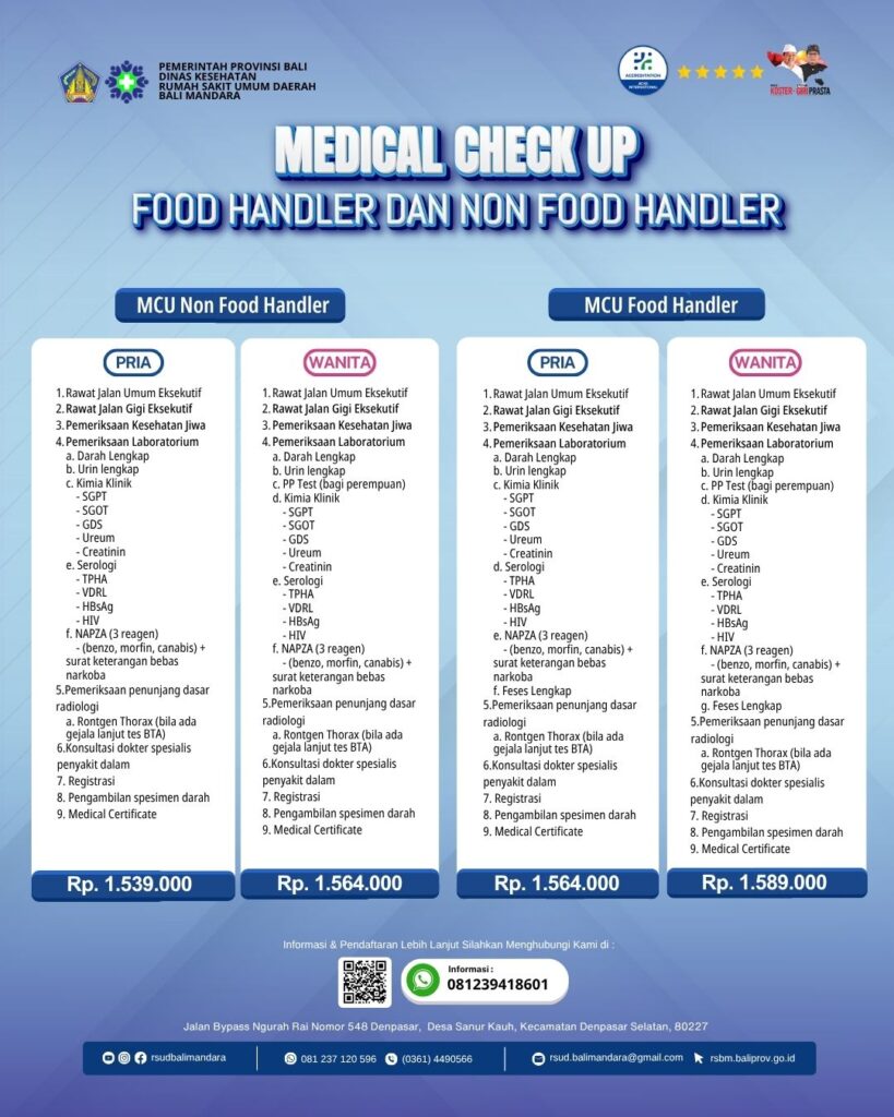 Paket Pemeriksaan Lainnya RSUD Bali Mandara memiliki beberapa paket lainnya dengan harga terjangkau Klinik gambar di bawah untuk informasi lebih lanjut