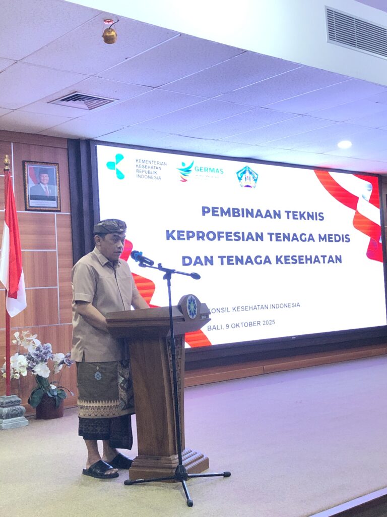 Untuk memaksimalkan peran Pelayanan Kesehatan (Yankes),Kemampuan Tenaga Medis (Kemgadis) dan Tenaga Kesehatan (Tenkes), Dinas Kesehatan Provinsi Bali diharapkan memfasilitasi dan mengkoordinasikan Pembinaan Teknis Keprofesian Tenaga Medis dan Tenaga Kesehatan oleh Kansil Kesehatan Indonesia (KKI). Saat membuka acara tersebut, Kamis, 9 oktober 2025 secara Daring dan Luring, Kepala Dinas Kesehatan Provinsi Bali, Dr dr I Nyoman Gede Anom, M.Kes mengungkapkan, Pembinaan teknis yang dilaksanakan merupakan salah satu kegiatan yang diarahkan untuk meningkatkan mutu/kualitas pelayanan kesehatan, kemampuan tenaga medis dan tenaga kesehatan serta melindungi masyarakat terhadap segala kemungkinan yang dapat menimbulkan bahaya bagi kesehatan.