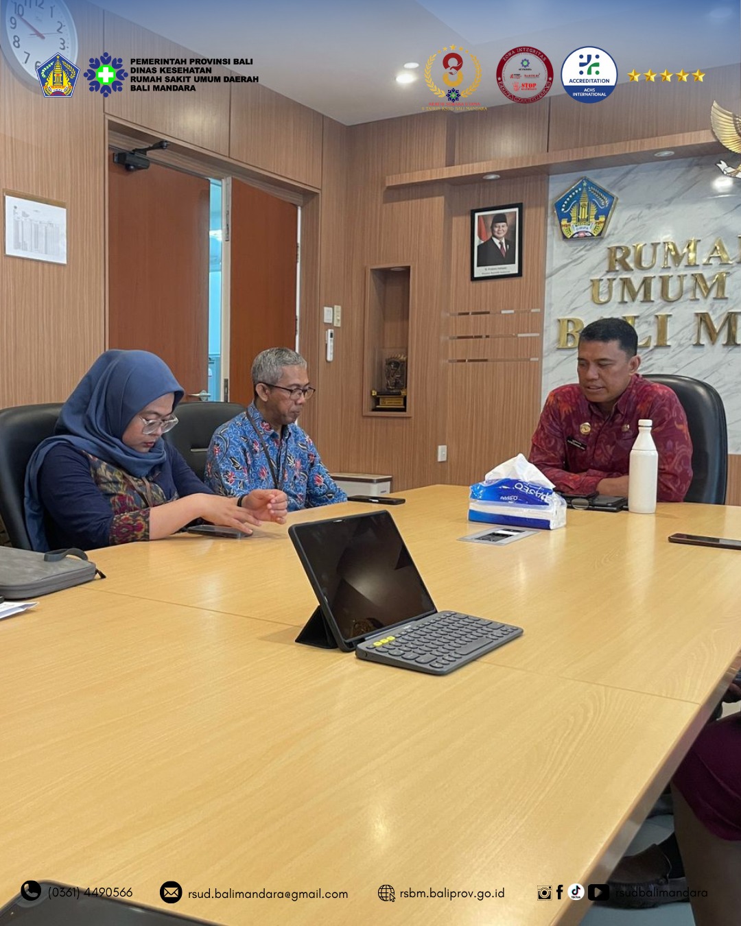Telah dilaksanakan Penilaian Maladministrasi Oleh Ombusdman Perwakilan Bali Di RSUD Bali Mandara. Kegiatan diterima langsung oleh Direktur RSUD Bali Mandara dr. I Gusti Ngurah Putra Dharma Jaya,M.Kes. bersama dengan jajaran Direksi Manajemen.